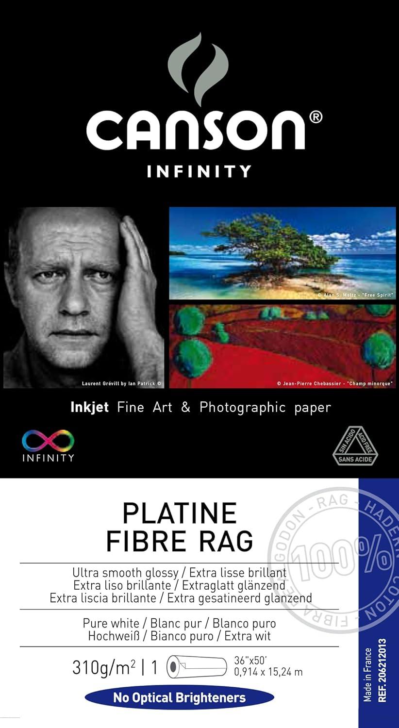 Size: 44 x 50 foot, Style Name: Roll. Canson infinity Platine Fibre Rag is the combination of the premium 100 percent cotton platinum paper that Canson has supplied for many years to the original platinum and Platine photographic market, with the latest micro-porous coating making the traditional darkroom paper now available for your digital printing. This paper is ultra-white without the use of OBAs (optical brightening agents), resistant to ageing, and contains a micro-porous ink-receptive layer that looks and feels like the traditional Baryta base. The density of the blacks make this the ideal for black and white photography. This is for one 44 x 50 foot roll of 310 gram, acid free paper. This paper provides the aesthetic and feel of the original F-type Baryta Fibre paper. Canson infinity Platine Fibre Rag is the product of choice for the more discerning black and white photographs. All Canson Infinity ICC profiles are available on Canson-Infinity website.