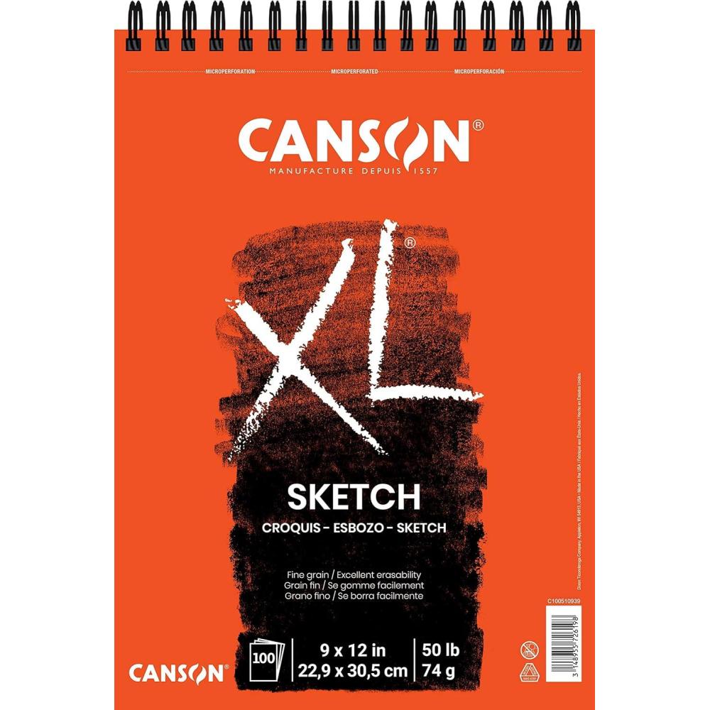 Size: 9 x 12 inch, style name: Top Wire. The Canson XL series is a line of pads that combines value with performance designed to appeal to art students and enthusiasts from middle school through college. Canson XL pads were developed with art professors who tested their performance reliability with a variety of media. They feature superior construction and heavier weight cover materials than other value priced pads. Excellent quality papers in generous pads offer exceptional value. The spiral bound pads in the XL series contain micro-perforated sheets which allow for clean removal and use of the full dimensions listed on the cover of the pad. All XL products are manufactured using sustainable processes. Canson XL Sketch pads feature a surface with a medium tooth that erases cleanly. These pads contain 100 sheets of 50 pound/74 grams acid free 9 x 12 inch paper.